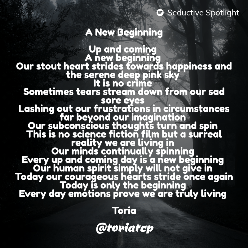 This last one is a poem written by Toria and was submitted via Instagram for my Seductive Spotlight Poetry Prompt. It’s entitled, A New Beginning. Let’s get into it.