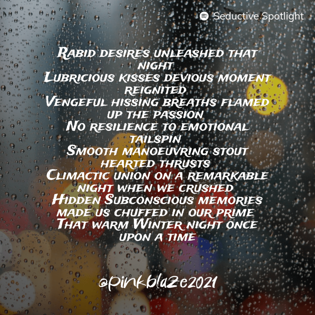 Next is a poem written by @pinkblaze2021 and was submitted via Instagram for my Seductive Spotlight Poetry Prompt. Here’s the piece.